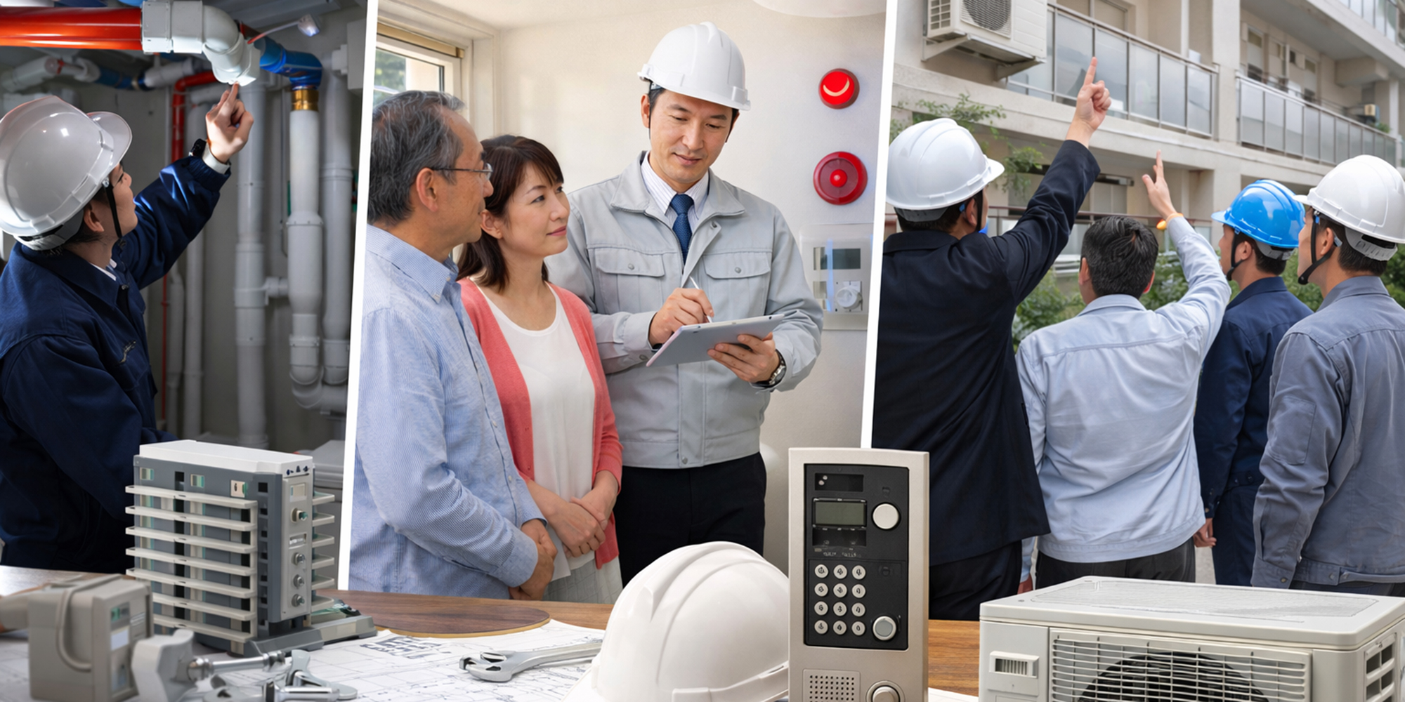 普段は目につかない設備(給排水、電気、空調、消防設備、インターフォン等)は、建物の内外装に比べ劣化度を確認する機会は少ないですが、毎日の暮らしに欠かせない重要なライフラインです。 一旦不具合が起こると日々の生活に重大な影響を及ぼします。壊れる前に直す保全計画という考え方が重要です。 工事を行う場合は専有部内への立ち入りなど建築工事以上に居住者様の理解と一人一人の協力が必要です。 多くの設備改修工事を経験し、豊富な知識と高い技術力、合意形成能力で設備改修工事を円滑に進めるアドバイスを行います。